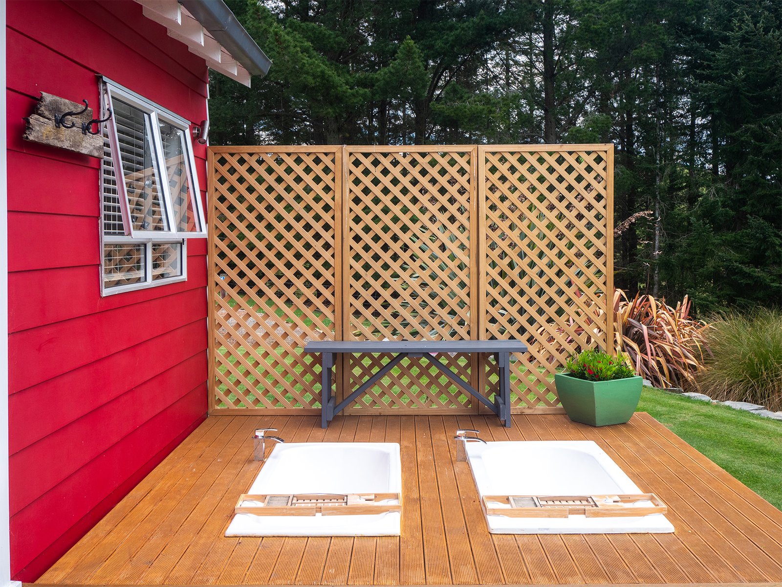 Guests enjoy exclusive use of the entire building, set in a spacious private garden with an outdoor deck.