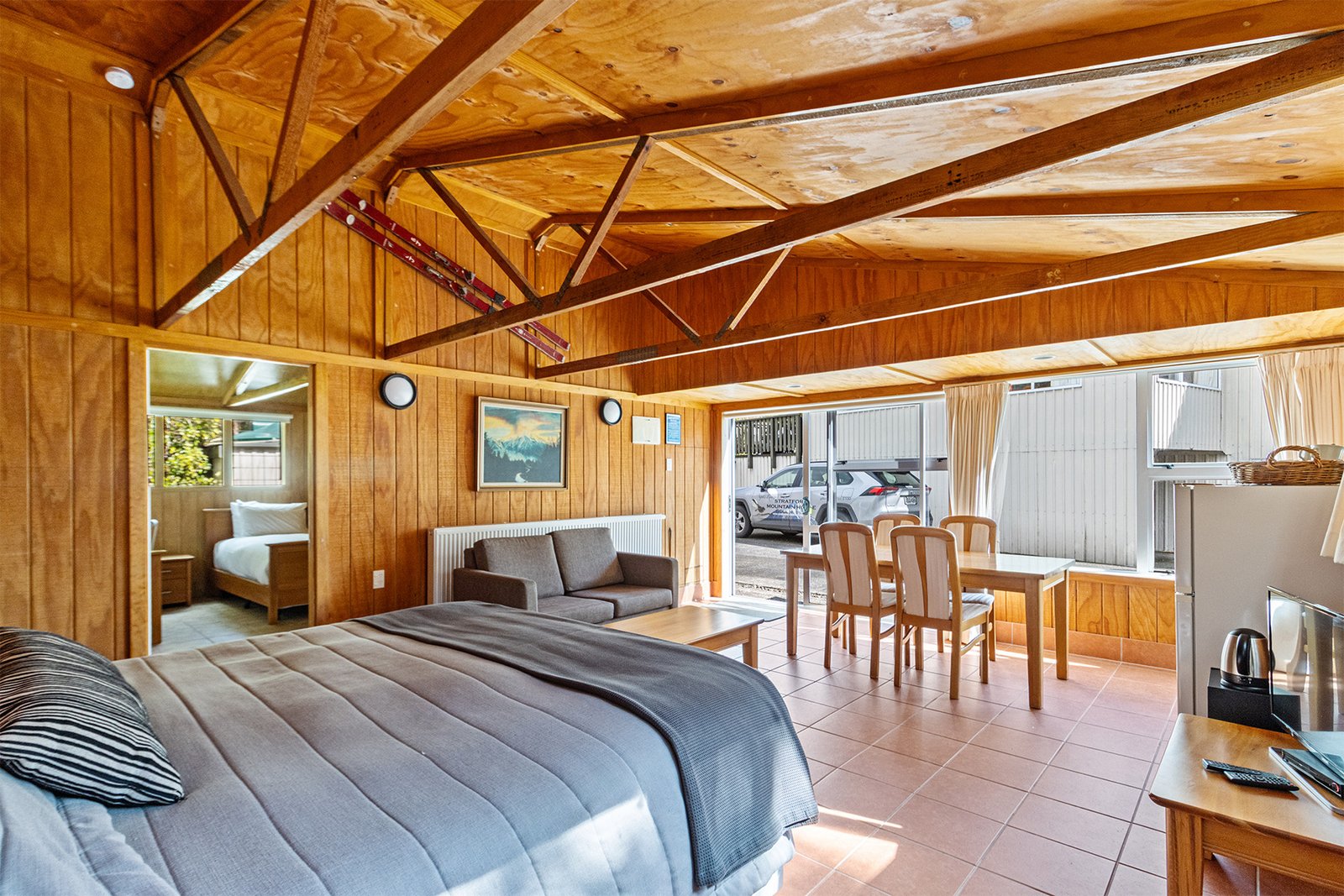 Mountain Lodge (formerly Stratford Mountain House) is proudly locally owned and operated by Ngāti Ruanui. Offering a range of Stratford accommodation options — including studio units, family apartments, a twin room, and a separate cabin. It’s the perfect escape to unwind and reconnect with nature.